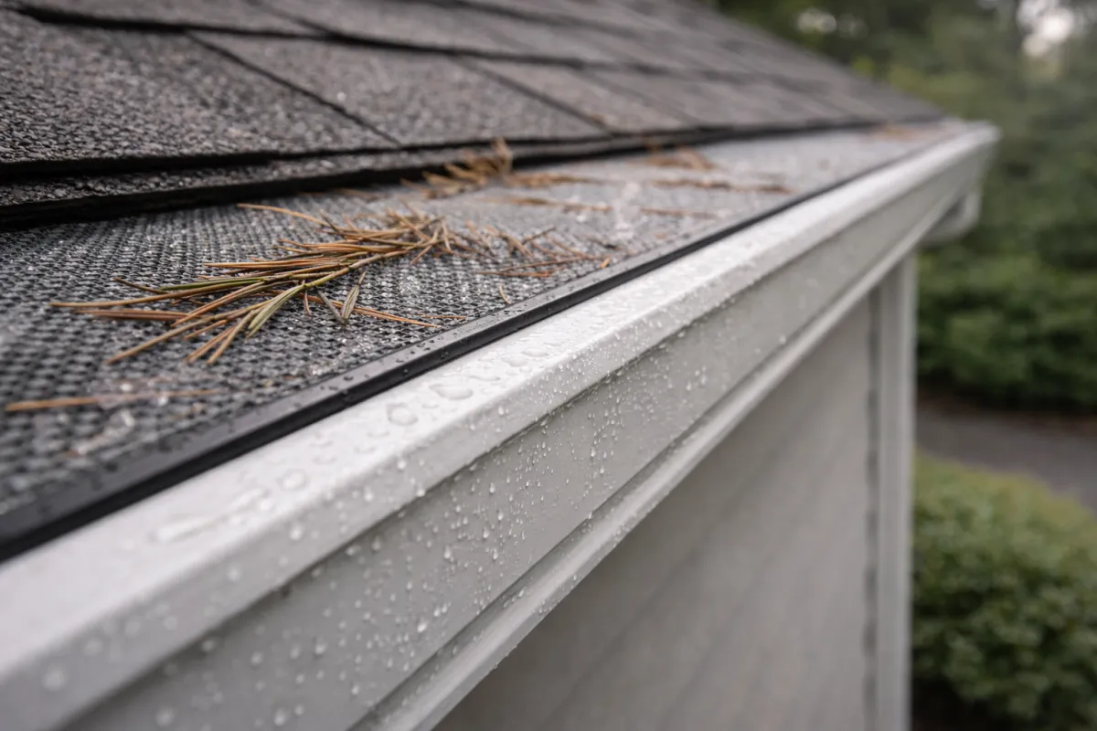 Blocks Debris: Keeps pine needles, leaves, and roof grit out of the system.