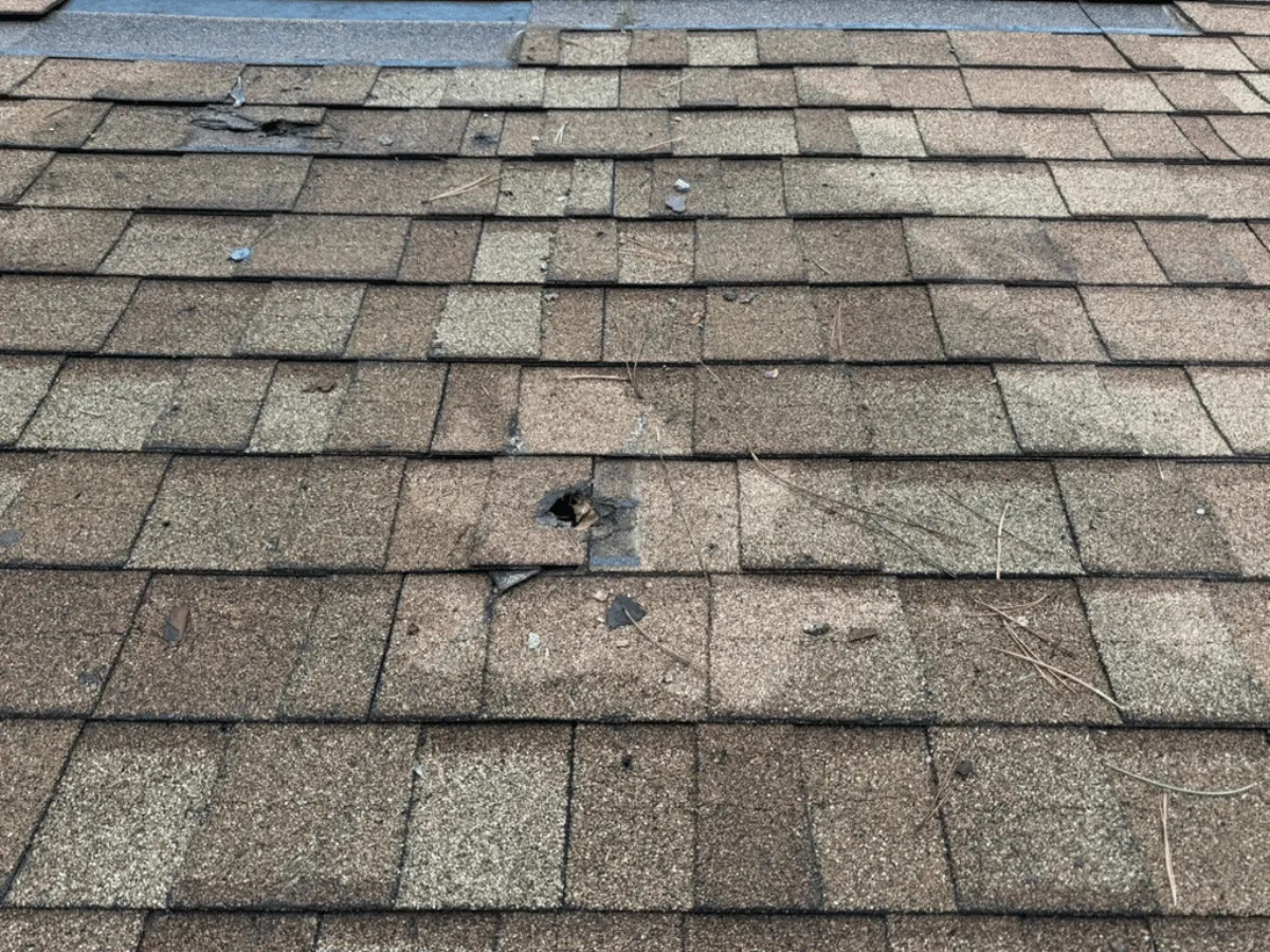 The obvious sign. If you see shingles in your yard or bare spots on your roof, you have an open wound on your home that needs immediate covering.